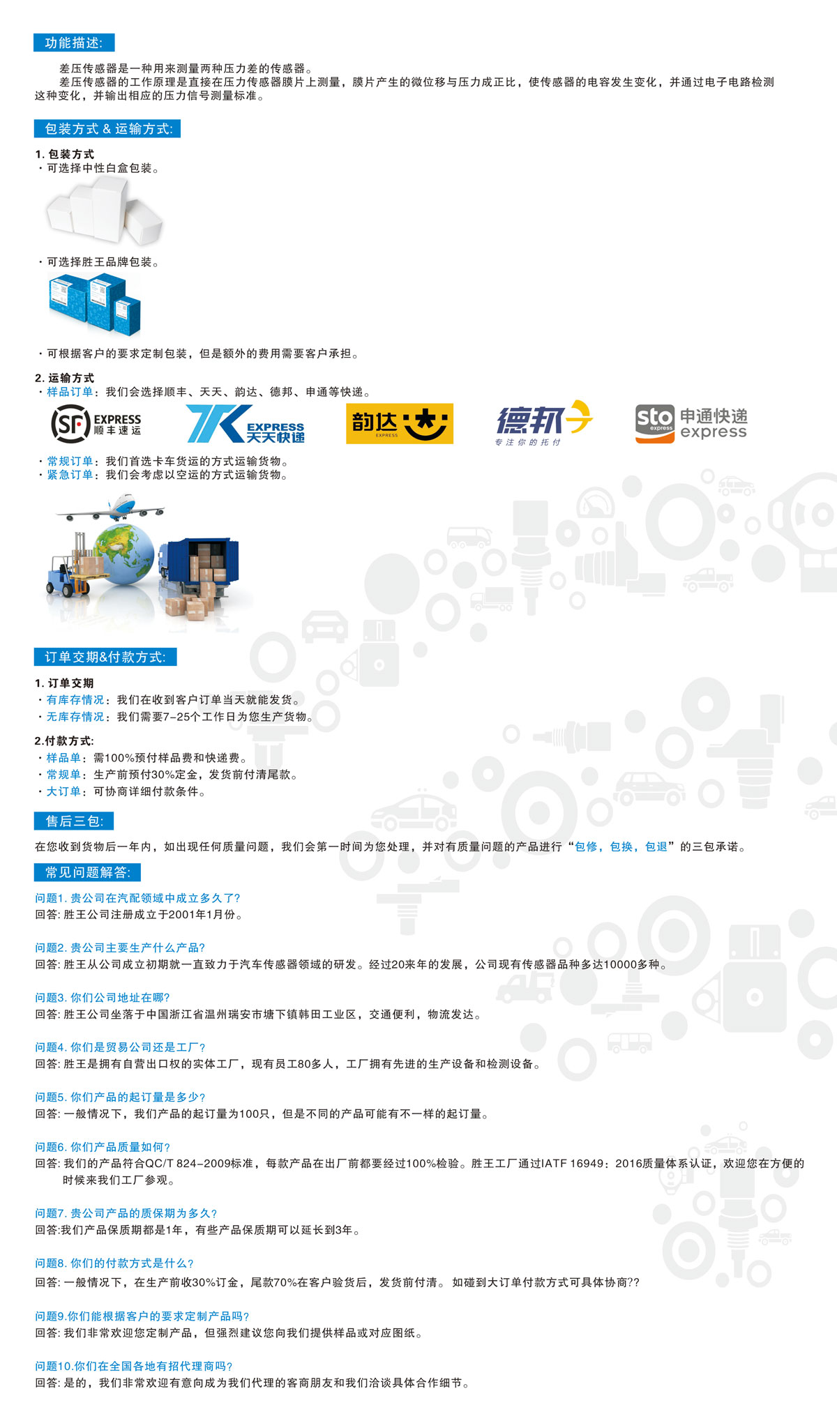 • 公司拥有强大的技术研发团队和产品的大数据分析系统,每年能研发出超200款以上具有市场竞争力的传感器产品。