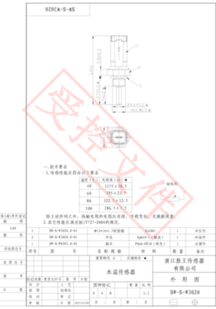 冷却水温度传感器 SW-S-W3020