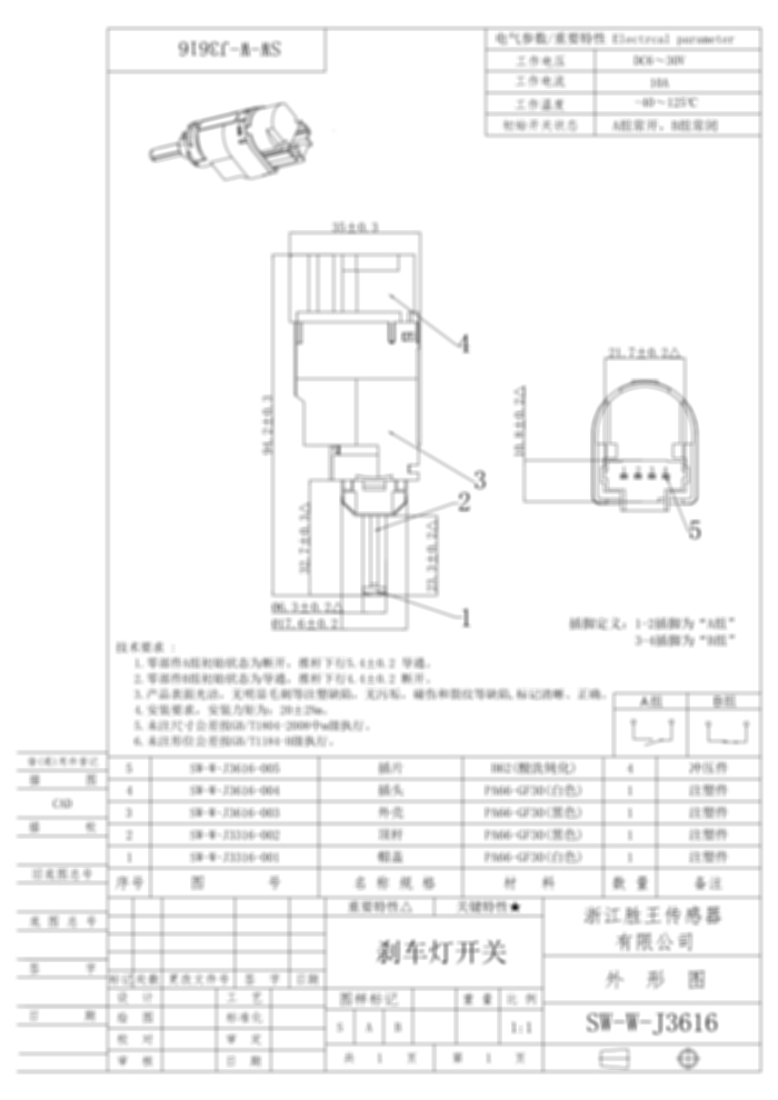 刹/倒车灯开关 SW-W-J3616