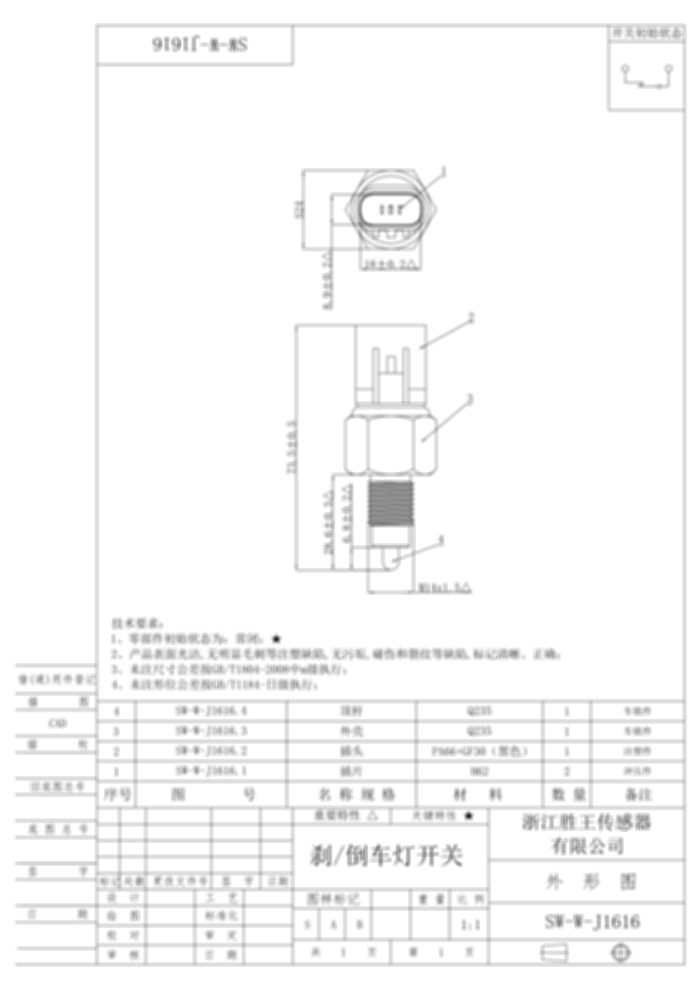 刹/倒车灯开关 SW-W-J1616