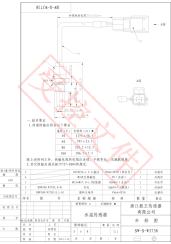 冷却水温度传感器 SW-S-W3738