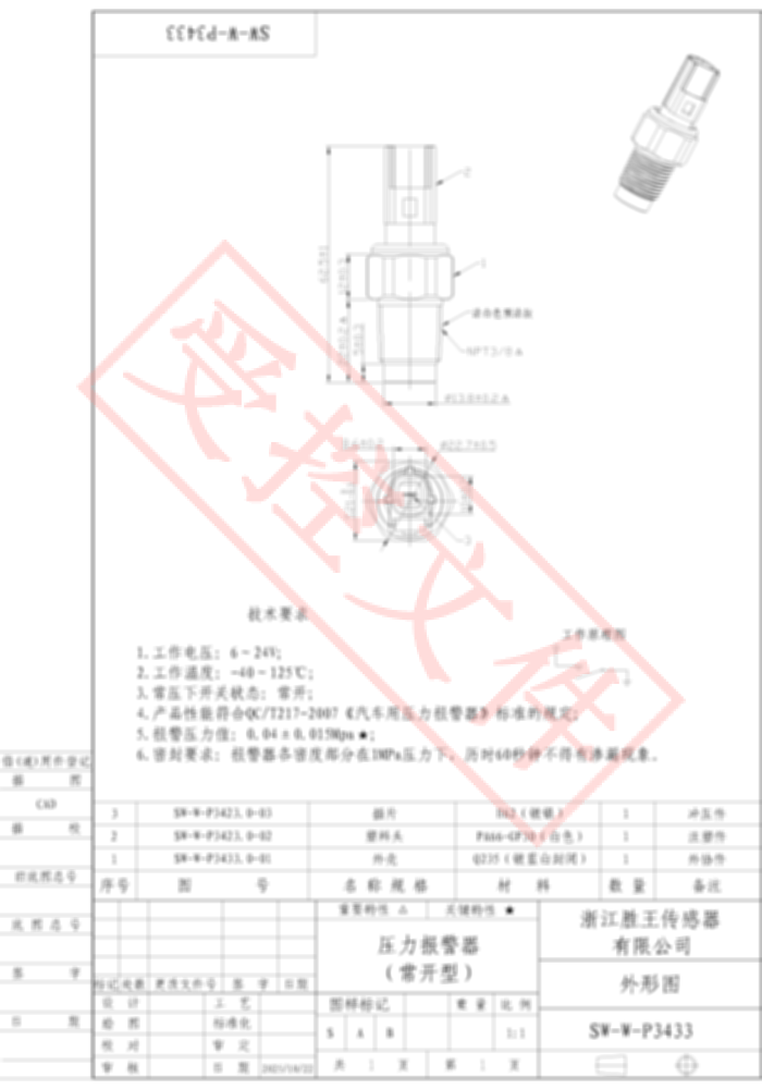 Air/Oil Pressure Switch SW-W-P3433
