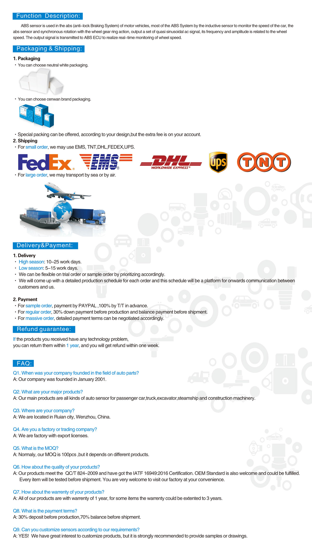 • with a strong technical team and great data analysis system, CENWAN can develop more than 200 competitive sensors every year.