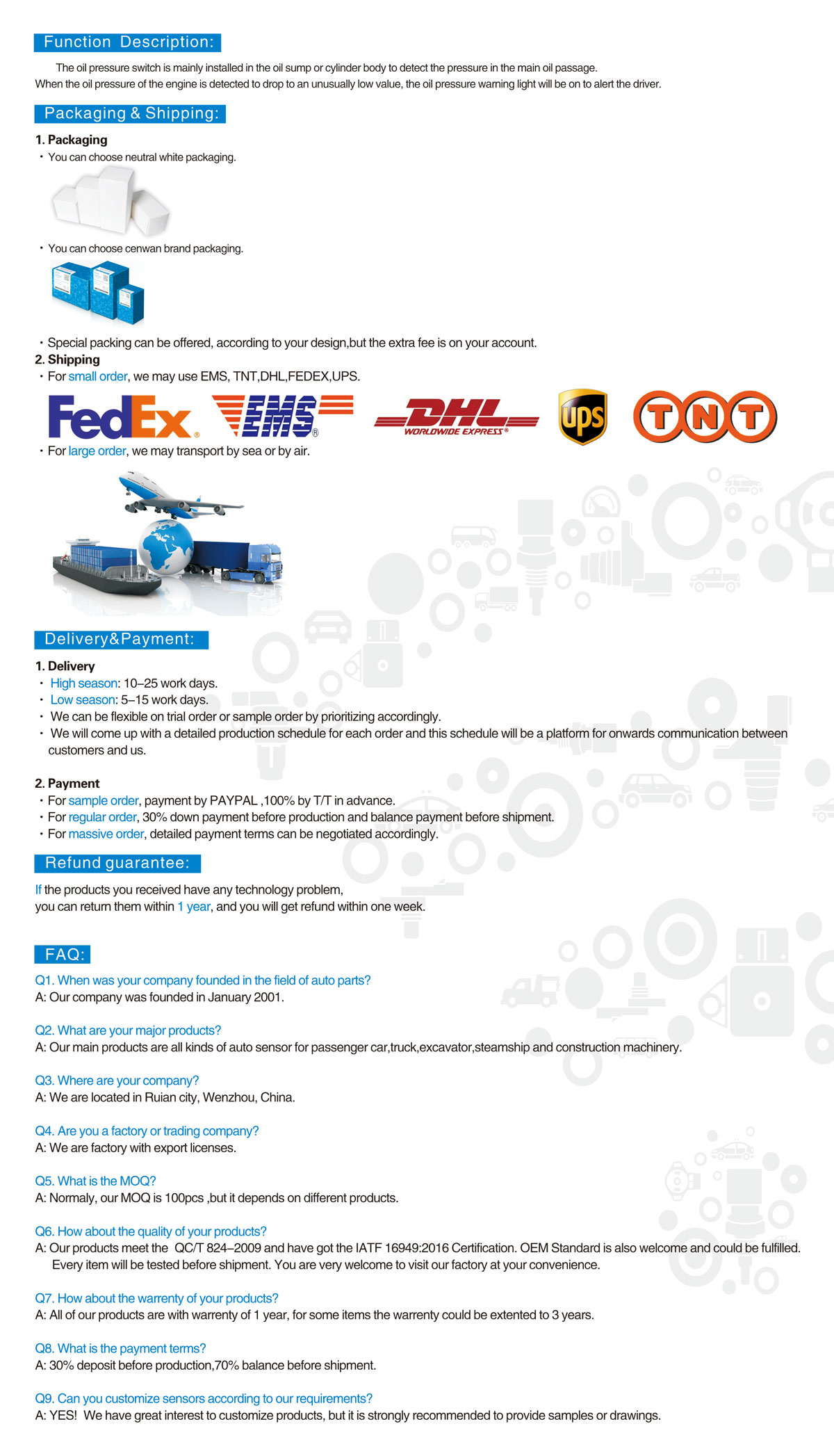 • with a strong technical team and great data analysis system, CENWAN can develop more than 200 competitive sensors every year.