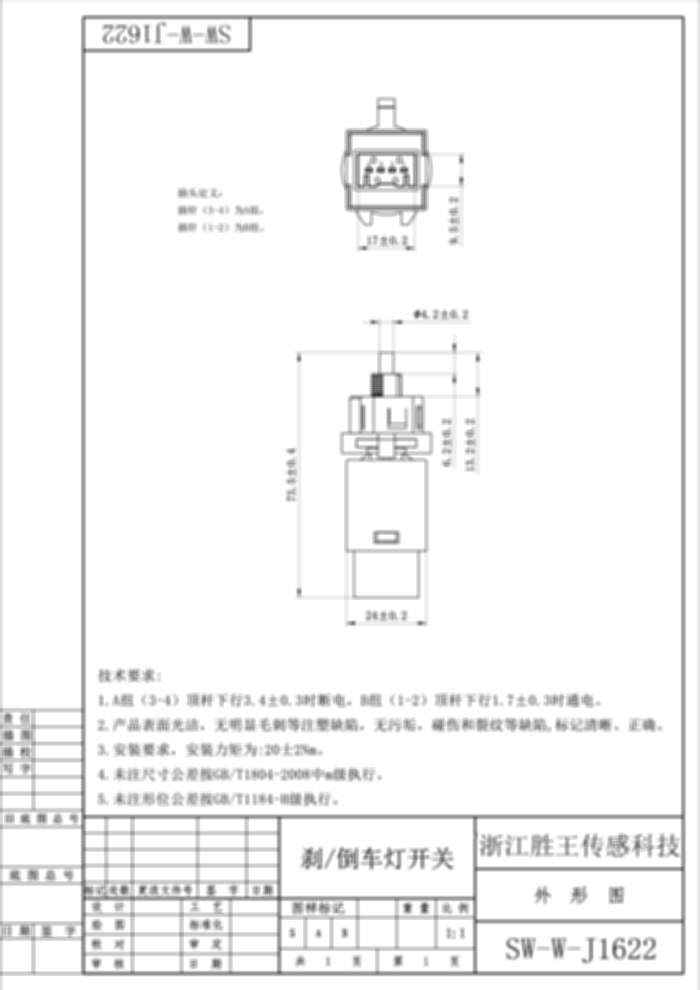 刹/倒车灯开关 SW-W-J1622