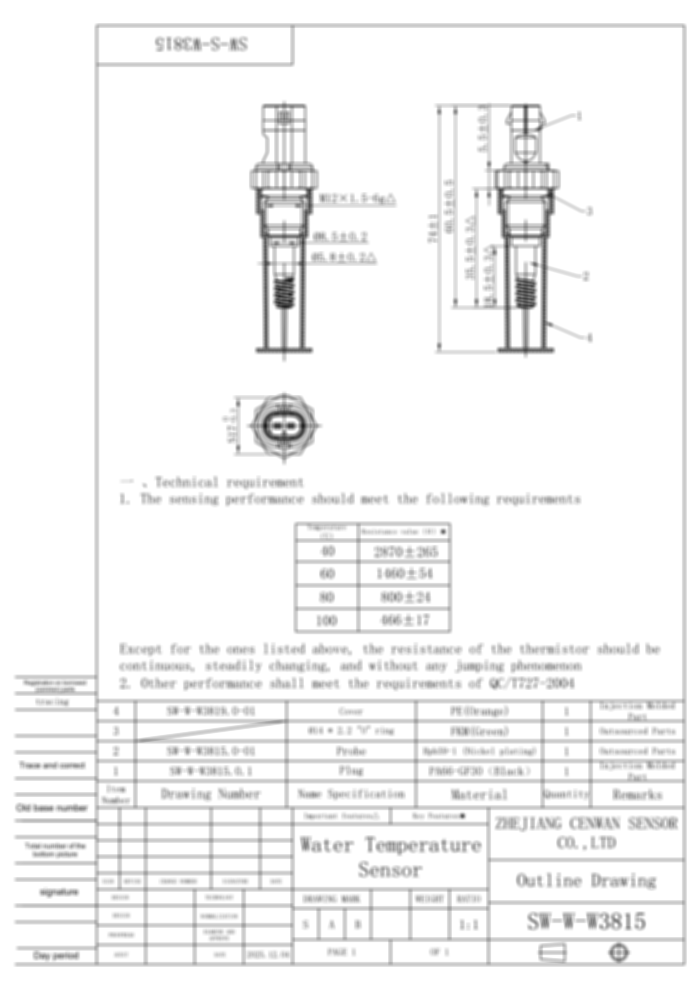 缸盖温度传感器 SW-S-W3815