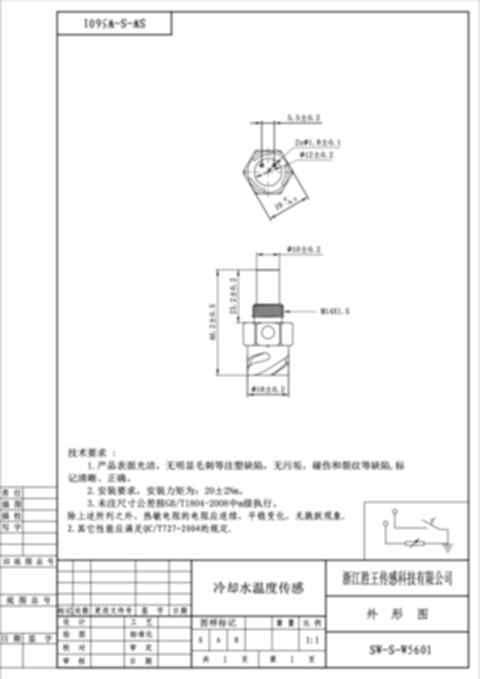 冷却水温度传感器 SW-S-W5601