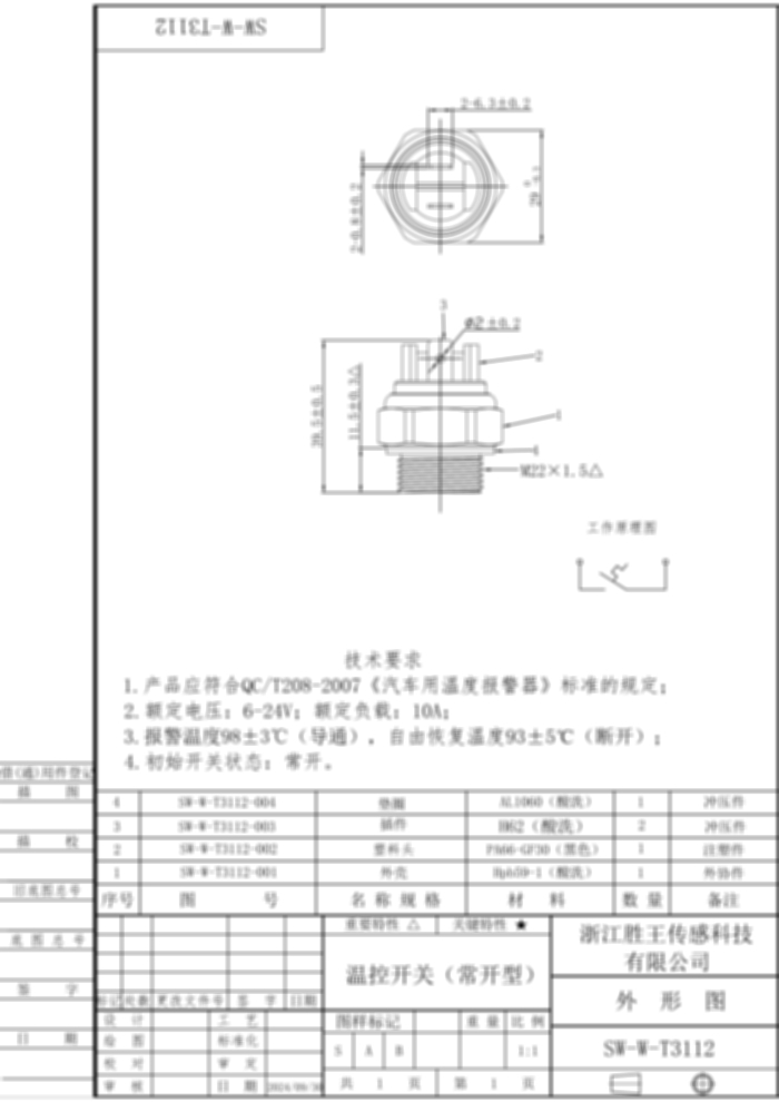 温控开关 SW-W-T3112