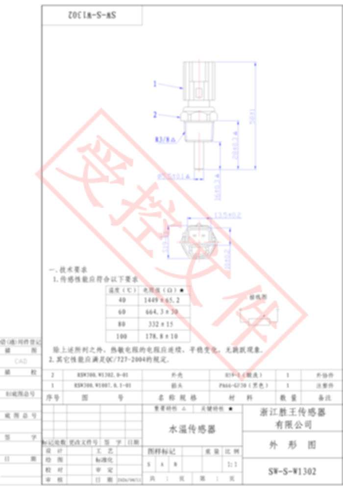冷却水温度传感器 SW-S-W1302