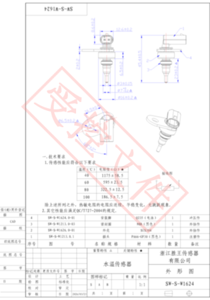 冷却水温度传感器 SW-S-W1624