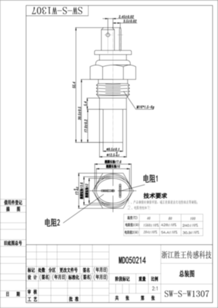 冷却水温度传感器 SW-S-W1307