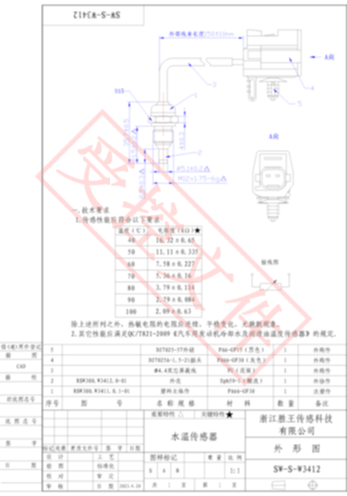 冷却水温度传感器 SW-S-W3412
