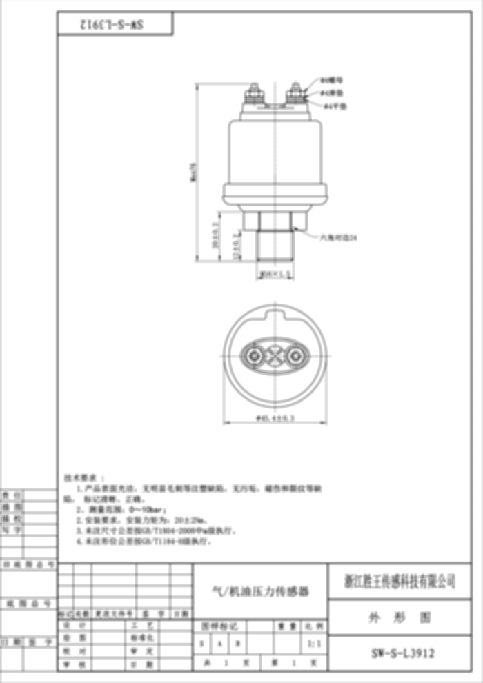气/机油压力传感器 SW-S-L3912