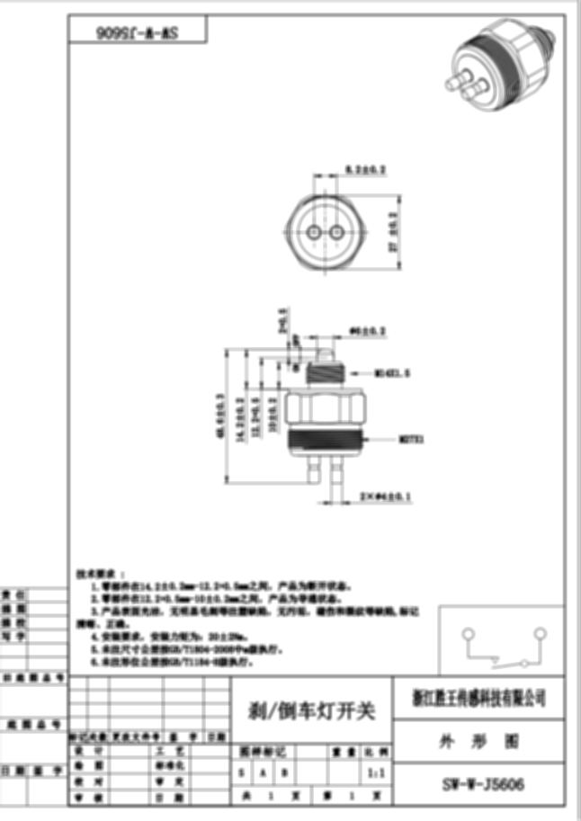 刹/倒车灯开关 SW-W-J5606