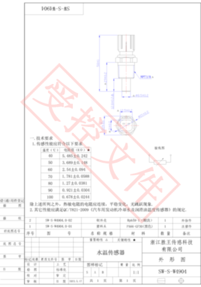 冷却水温度传感器 SW-S-W4904