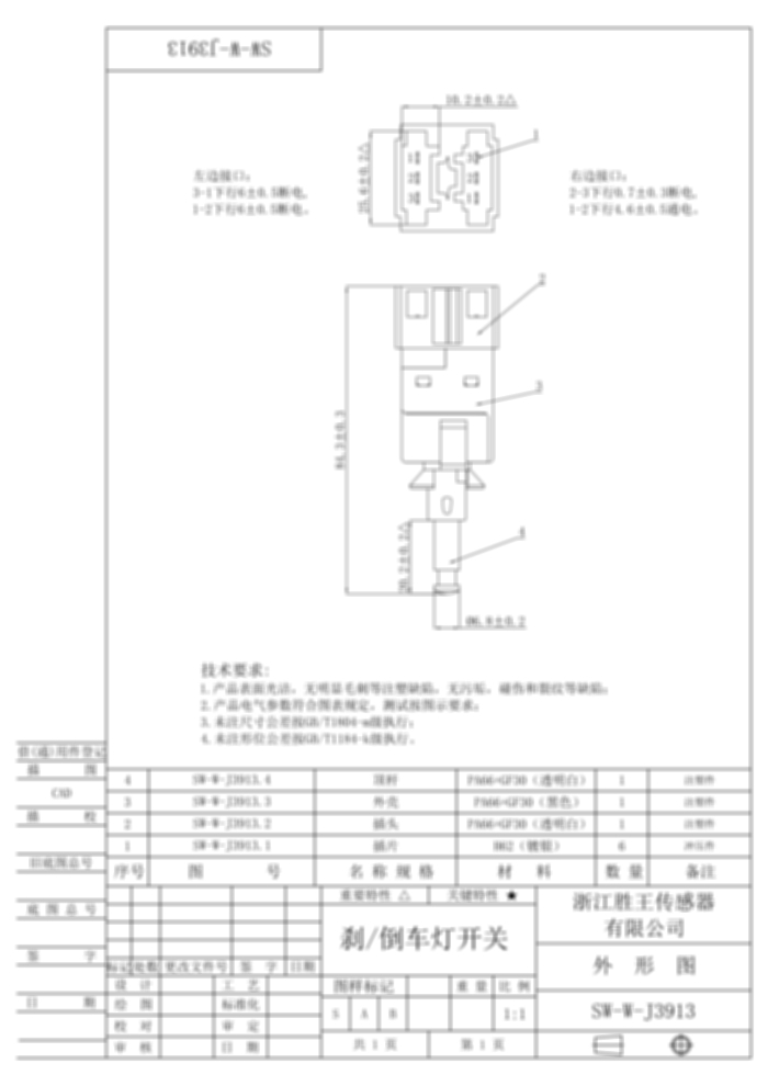 刹/倒车灯开关 SW-W-J3913