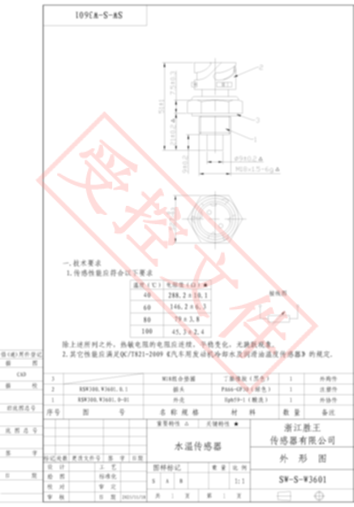 冷却水温度传感器 SW-S-W3601