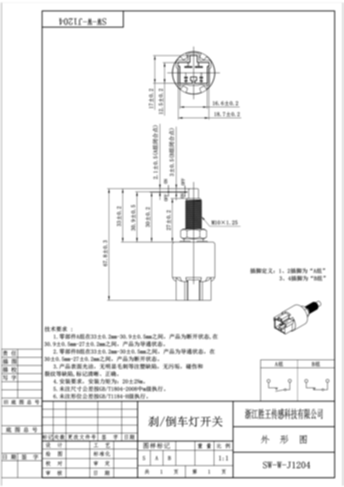 刹/倒车灯开关 SW-W-J1024