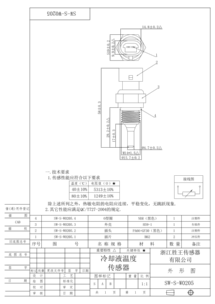冷却水温度传感器 SW-S-W0205