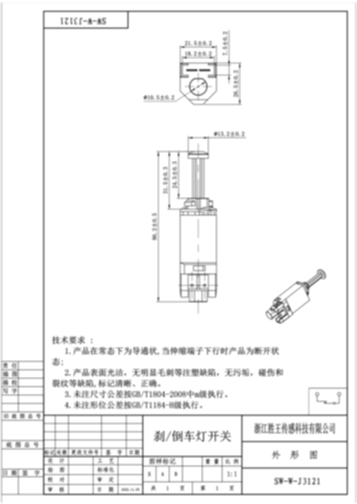 刹/倒车灯开关 SW-W-J3121