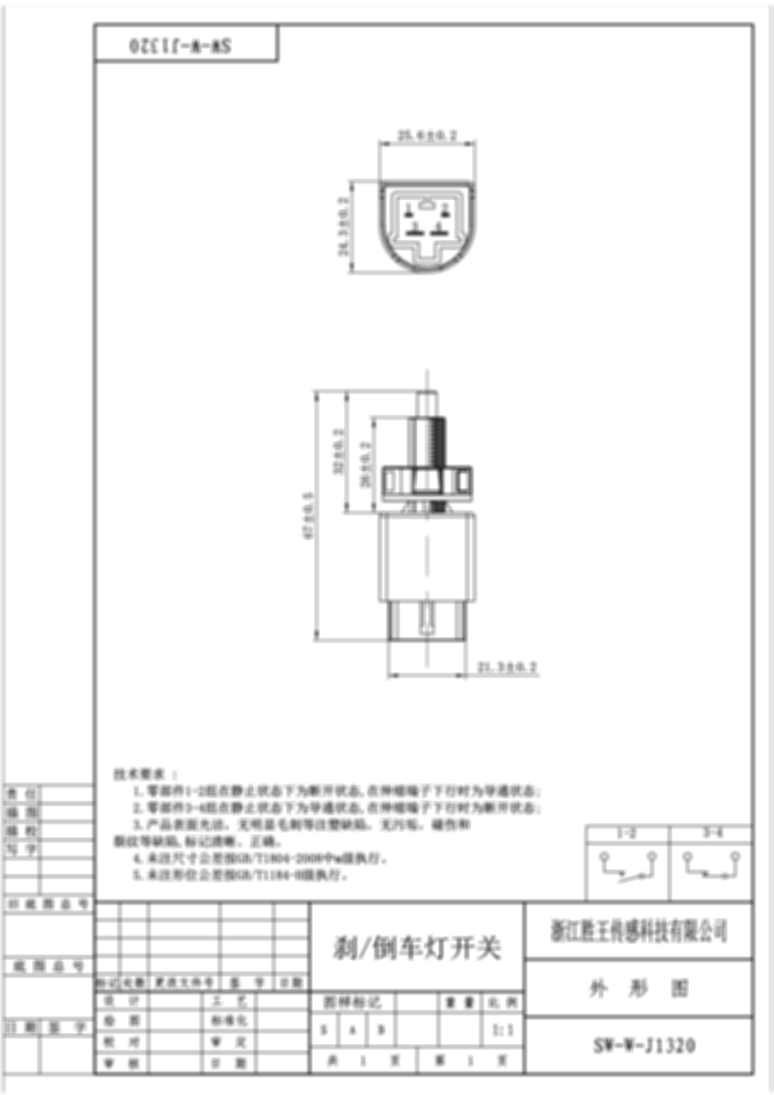 刹/倒车灯开关 SW-W-J1320