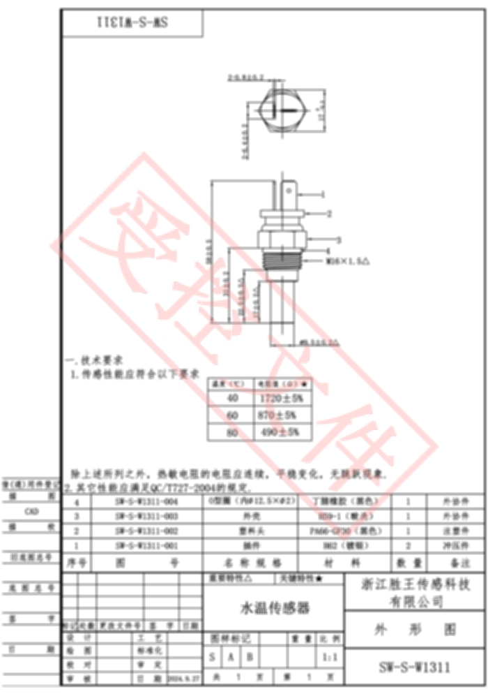 Coolant Water Temperature Sensor SW-S-W1311