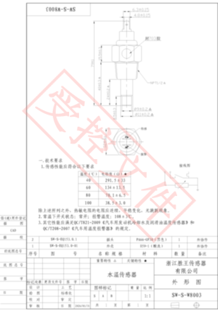 Coolant Water Temperature Sensor SW-S-W8003