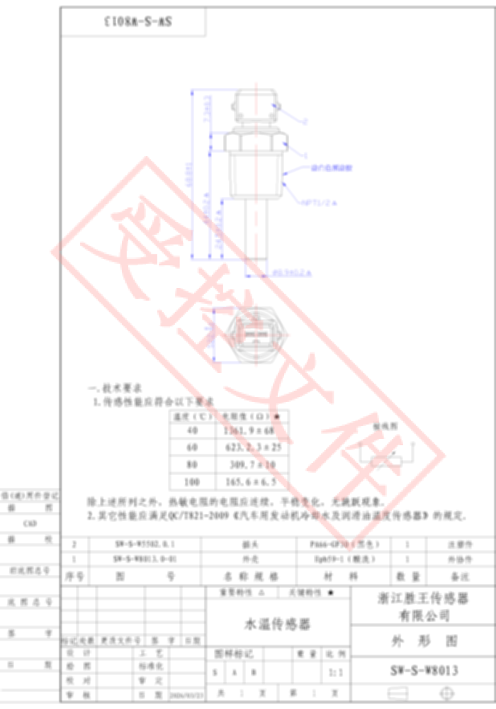 Coolant Water Temperature Sensor SW-S-W8013