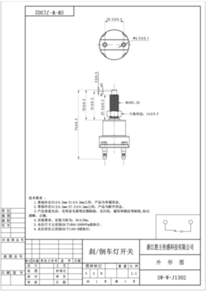 Stop/Reverse Light Switch SW-W-J1302