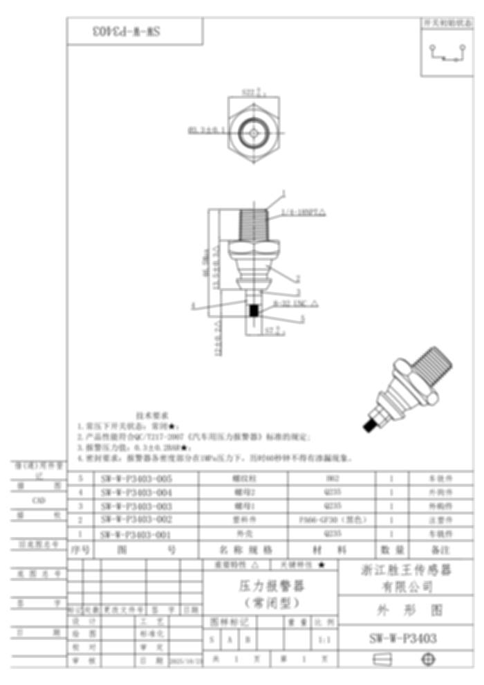 Air/Oil Pressure Switch SW-W-P3403