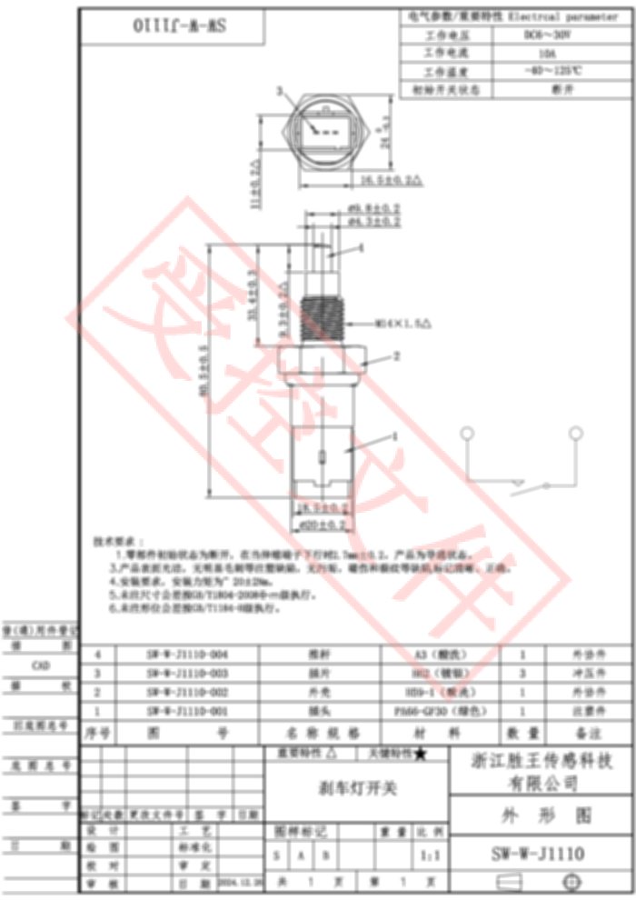 Stop/Reverse Light Switch SW-W-J1110