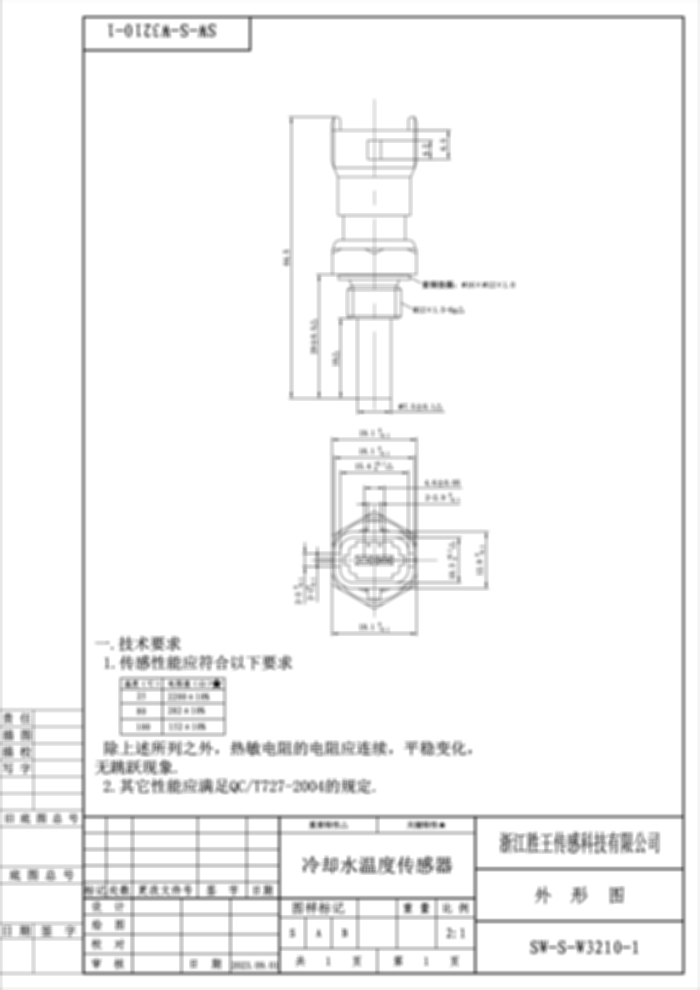 Coolant Water Temperature Sensor SW-S-W3210-1