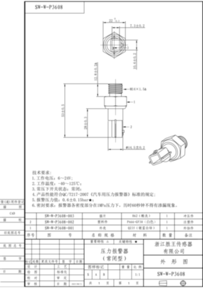 Air/Oil Pressure Switch SW-W-P3608