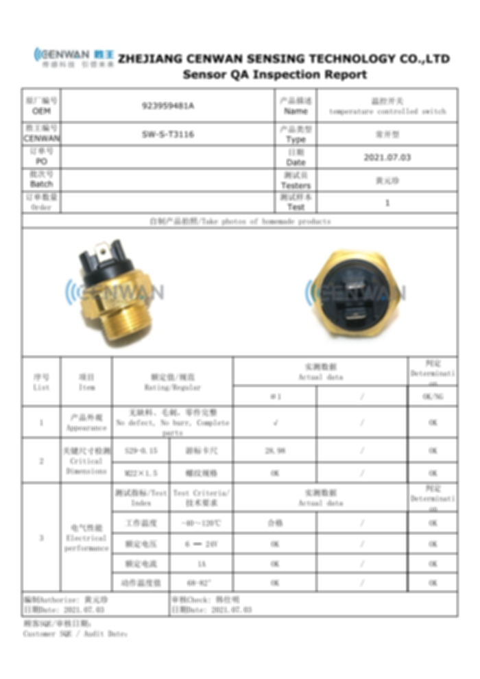 • with a strong technical team and great data analysis system, CENWAN can develop more than 200 competitive sensors every year.