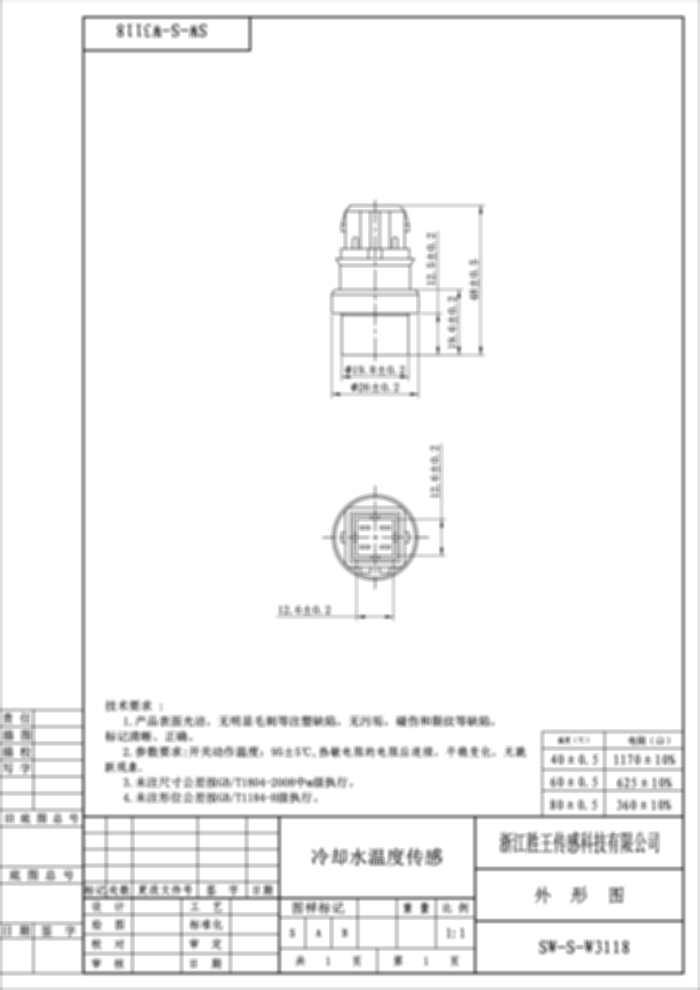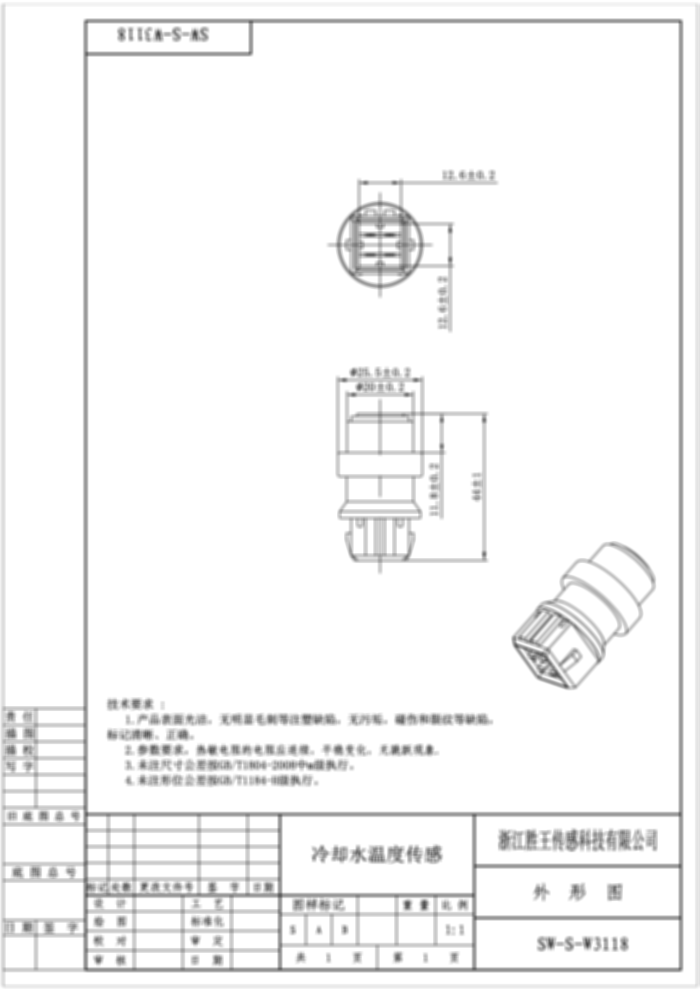Coolant Water Temperature Sensor SW-S-W3118