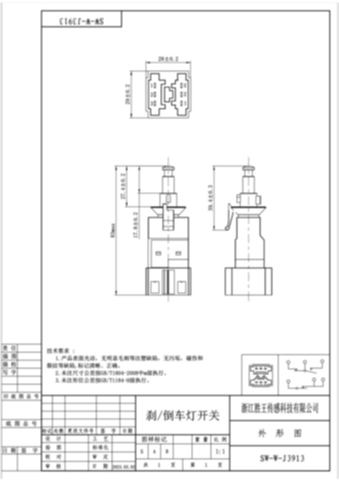 Stop/Reverse Light Switch SW-W-J3913