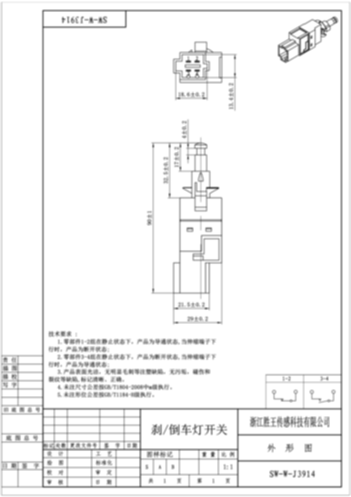 Stop/Reverse Light Switch SW-W-J3914