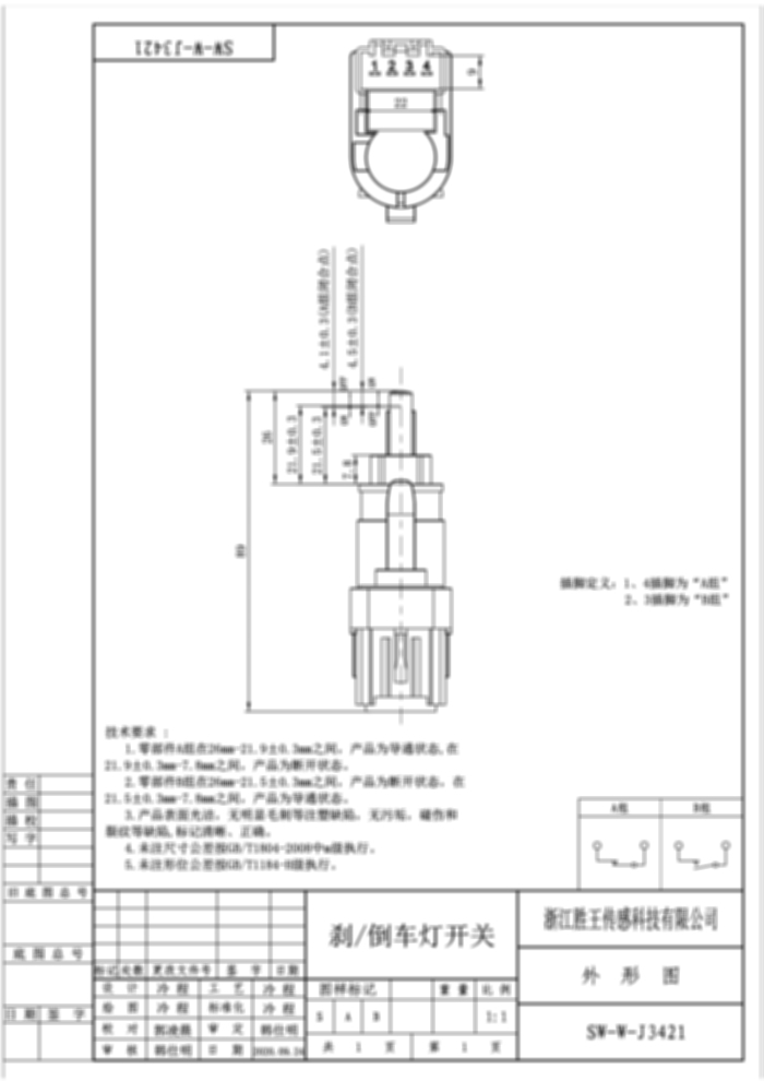 Stop/Reverse Light Switch SW-W-J3421
