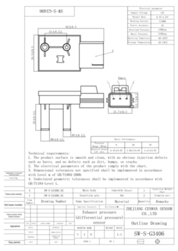 Exhaust Air Pressure Sensor(DPF) SW-S-G3406